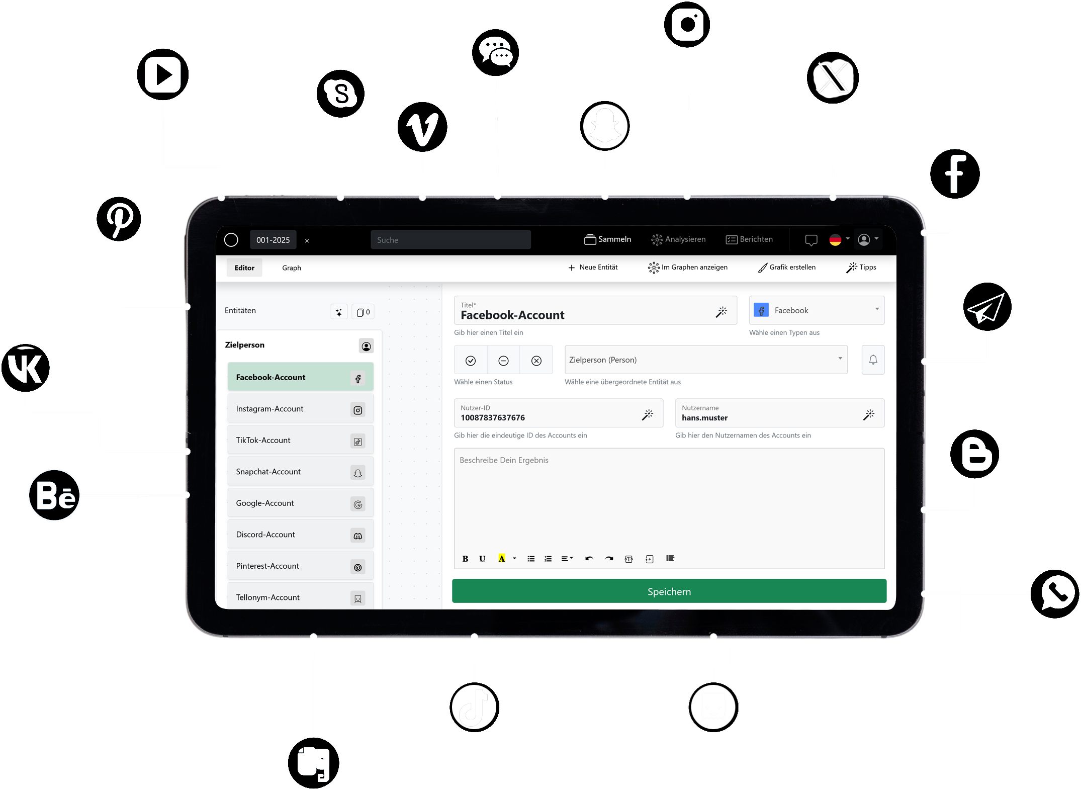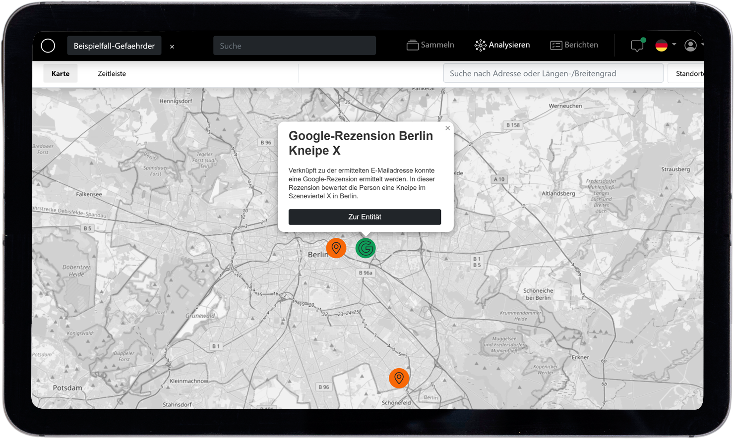 Für Analyst:innen, Ermittler:innen, Journalist:innen und OSINT-Enthusiasten. Unsere Software richtet sich an alle, die Informationen effizient sammeln, analysieren und verständlich aufbereiten müssen – ob im behördlichen, journalistischen oder privaten Kontext.