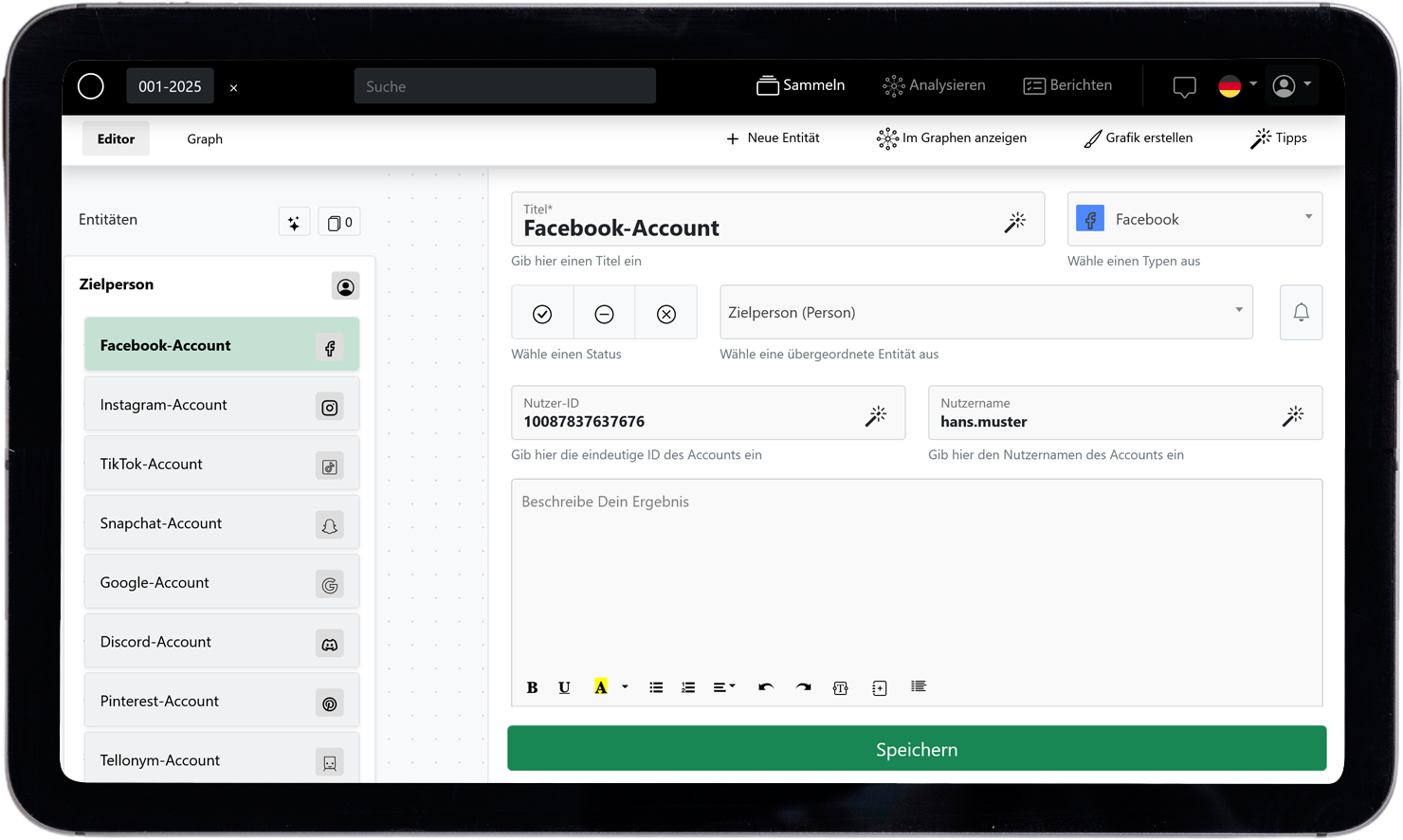 Features Entdecke die leistungsstarken Features von OSINTEAGLE – entwickelt, um Deine Informationsanalyse einfacher, schneller und präziser zu machen.